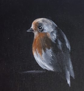 Es war einmal ein schöner Vogel, der orange, weiss und schwarz war. Der Vogel wollte immer etwas malen. Aber seine Besitzerin mochte keine Bilder und Kunst. Seine Besitzerin war Kathrin Christen. Deshalb war der Vogel traurig. Er flog immer zu einer Ausstellung und flog manchmal sogar hinein. Eines Tages bemerkte es die Besitzerin und verfolgte den Vogel. Da bemerkte es der Vogel. Er flog nicht zu der Ausstellung, weil er zu viel Angst hatte, dass seine Besitzerin wütend wurde. Er flog in die Stadt, dorthin wo die anderen Vögel waren. Als die Besitzerin ihn nicht mehr verfolgte, flog er wieder nach Hause. Am Morgen flog der Vogel wieder zu der Ausstellung. Die Besitzerin verfolgte den Vogel, aber diesmal bemerkte der Vogel es nicht. Als sie ihn in der Ausstellung sah, wurde sie nicht wütend. Sie fand es süss, wie ihr Vogel versuchte zu malen. Da versuchte die Besitzerin auch etwas zu malen. Die Besitzerin hat ihren Vogel gemalt. Das Bild war so schön, dass es in die Ausstellung „Lenzburg stellt aus“ kam. Sie nannte es „Bingo, das Bild“.