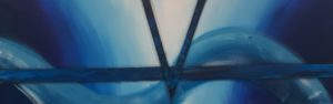 Dieses V wurde auf ein Band gesetzt. Aber nachher hat das V auf diesem Band gestört und man hat das V einfach weggeworfen. Dann hat jemand anders das V gefunden und ein Bild gemalt und das V daraufgelegt.