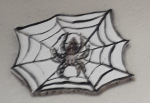 – im Hintergrund kann man ein großes Spinnennetz sehen.
