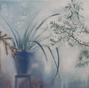 ♠ Das Bild wirkt auf mich sehr beruhigend aber auch sehr kalt. Die Künstlerin kann sehr gut mit Farbkontrasten umgehen und malt schöne und realistische Bilder. Sie hat eine Liebe fürs Detail und ihre Bilder wirken mit Liebe gemalt. Das Bild zeigt eine Vase mit mehreren wunderbar, mit Liebe zum Detail gemalten Blumen, die neigen sich zur linken, helleren Seite auf dem mattdunklen Hintergrund. Das Bild kostet an die 1000 Fr. was, wie ich finde, ein angemessener Preis für dieses Kunstwerk ist. Ich denke, dass die Künstlerin nichts anderes inspiriert hat, ausser ihre Fantasie und irgendwelche Blumen. Ausserdem scheint sie Blumen zu mögen, denn sie hat viele Bilder von Blumen gezeichnet. Ich kann mir gut vorstellen das Katrin Christen eine Liebe für Pflanzen und sicher einen grünen Daumen hat. Ich würde dem Bild aber einen anderen Namen geben. Zum Beispiel: Blaue Wolken Blumen. Hafti Abi