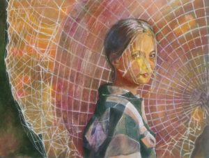 ♦ Das Bild, das Anja Vögeli gezeichnet hat, ist wunderschön. Es hat ein Mädchen mit blonden Haaren und ein weisses Spinnennetz. Mit verschiedenen Farben ist das Bild entstanden. Das Bild ist wertvoll, die Künstlerin hat sich sehr Mühe gegeben. Es ist eine Person im Bild. Die Person schaut dich an. Die Person fühlt sich gut. Sie hat ein komisches und spannendes Erlebnis. Ich weiss nicht, was sie nachher erleben wird. Ich würde es spannend finden. Vernetzt