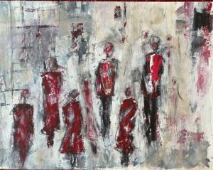 Jeder, der das Bild bei Roland zuhause an der Wand hängen sah, war überwältigt und wollte Roland Stöckli dazu überzeugen, das Bild an eine Ausstellung zu bringen. Schlussendlich landet das Bild hier, hier in der Kunstausstellung in Lenzburg. Ich sehe es und bin begeistert. Am liebsten würde ich genau da auf der Straße stehen und den Leuten zusehen, wie sie genussvoll ein Eis essen und ihr Leben genießen. SR