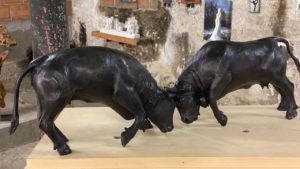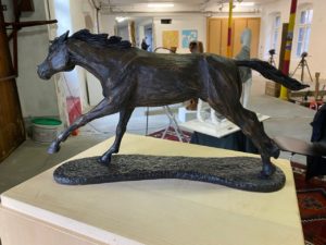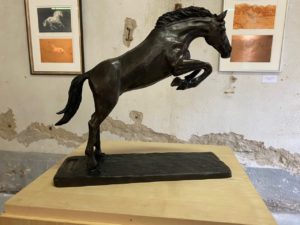 Mein Name ist Jana Frey und ich habe ein Modell vom Künstler Jörg Auer gewählt: Es ist ein springendes Pferd zu sehen, welches dunkelbraun bis schwarz ist. Es steht auf einer dargestellten Sandfläche und der Preis des Modells beträgt 4’500.- CHF. Aus Ton geformt, mit Gips übergossen und mit Bronze aufgefüllt wurde es vollendet. Die Stute wurde «Elegant Power» genannt, jedoch habe ich den Namen Rocket gewählt, da sie mich an eine Rakete erinnert, welche gestartet ist. Aber warum habe ich ausgerechnet dieses Werk gewählt? Da ich selber Tiere mag und auch seit 11 Jahren mich mit dem Reitsport beschäftige, interessierte ich mich für dieses Modell. Diese Anatomie und Genauigkeit gefallen mir sehr. Man sieht die Gelenke, Muskeln, Knochen und einzelnen Haarsträhnen welche sehr detailliert und realistisch gearbeitet wurden. Ausserdem wurden die Nüstern, das Fesselgelenk, sowie auch die einzelnen Blutgefässe sehr fein ausgearbeitet. Hätte man die Stute bemalt und vor einem realistischen Hintergrund fotografiert, hätte ich es locker mit einem echten Wesen verwechseln können. Jana Frey